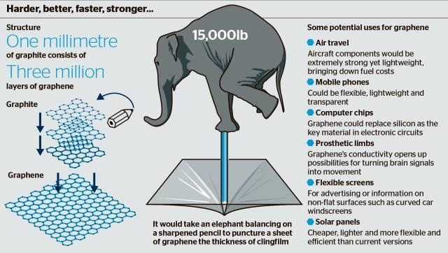 如果把厚度相当于人的头发丝直径十万分之一的石墨烯,叠成保鲜膜那样厚,需要一头大象站在一只铅笔上所产生的压强,才能刺破它。