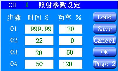 7.参数设定更方便,设定照射的方式更自由,可以是单一照射、间歇照射、分阶渐进照射或者是各种分阶混合照射等等,更好地满足工艺的各种需要;