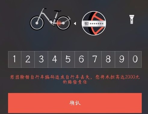 当输入单车编号后会出现“若因输错自行车编码造成自行车丢失,您将承担高达2000元的赔偿责任”,这一串文字好吓人对不?二维码贴错、识别也有错的好不?扫错二维码也没有这个赔偿责任对吧。所以DUSA君建议,不管是扫码开锁或者输入编号开锁,确认开锁前,响一下铃声,然后点击确认是这台车吗?就可以确保开锁正确。